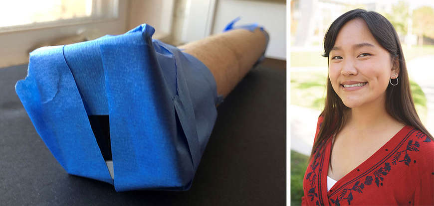 Loera, along with fellow seniors Calista Lum and Donovan Bercasio, all developed experiments on whether scary videos, shown on the VR glasses, affected viewers’ heart rates (they did). Lum, a physics major from Fairfield, used her cardboard-tube spectrometer to determine whether different types of protective glasses filter light effectively.