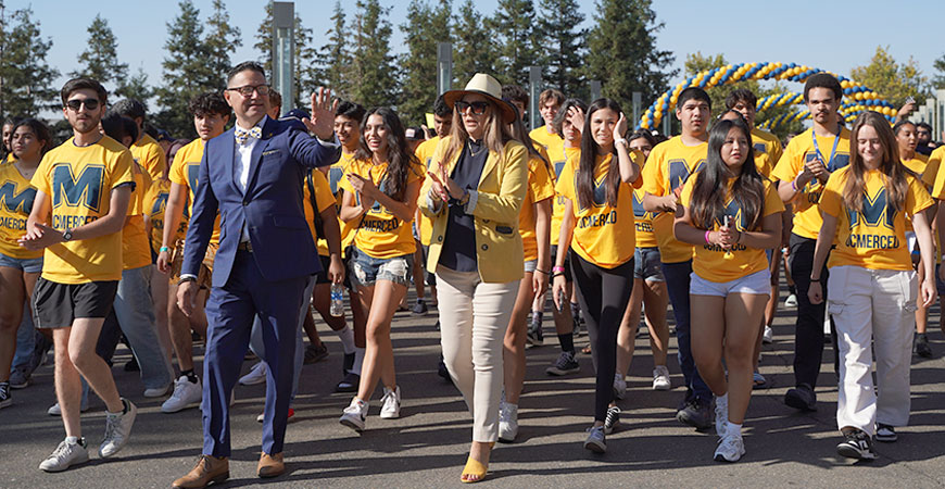 UC Merced said “welcome” to its 2,400 new students Tuesday as only UC Merced can, with a joyous and colorful Scholars Bridge Crossing ceremony that symbolizes their transformation into Bobcats at the San Joaquin Valley’s only research university.